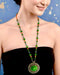 Handcrafted tribal necklace featuring a painted disc pendant with Tree of Life motif, wooden beads & turquoise chips. Natural, soulful & artistic.