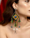 A premium handcrafted earring featuring intricately embroidered textile panels inspired by traditional floral motifs, suspended with antique-finish brass accents and statement ghungroo drops. The rich blue base with contrasting red and green embroidery creates a regal yet earthy aesthetic, celebrating slow fashion and artisanal excellence. Styling Tip: Pair these earrings with indigo sarees, linen kurtas, or solid dresses in ivory or navy. Best worn with minimal neckpieces and hair tied back to let the embroidery shine.