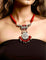 The Red Horizon Necklace stands out with its crimson beads and oxidised circular pendant, symbolizing strength and passion.